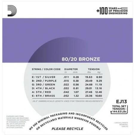 Diametro: Plain Steel .011 - .015, Bronze Wound .022 - .032 - .042 - .052