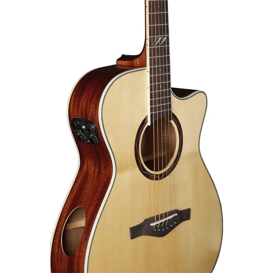 Elettronica: Eko Pro-10 (piezo + microfono) con sistema AGP (Acoustic Guitar Processor), ricaricabile via USB-C