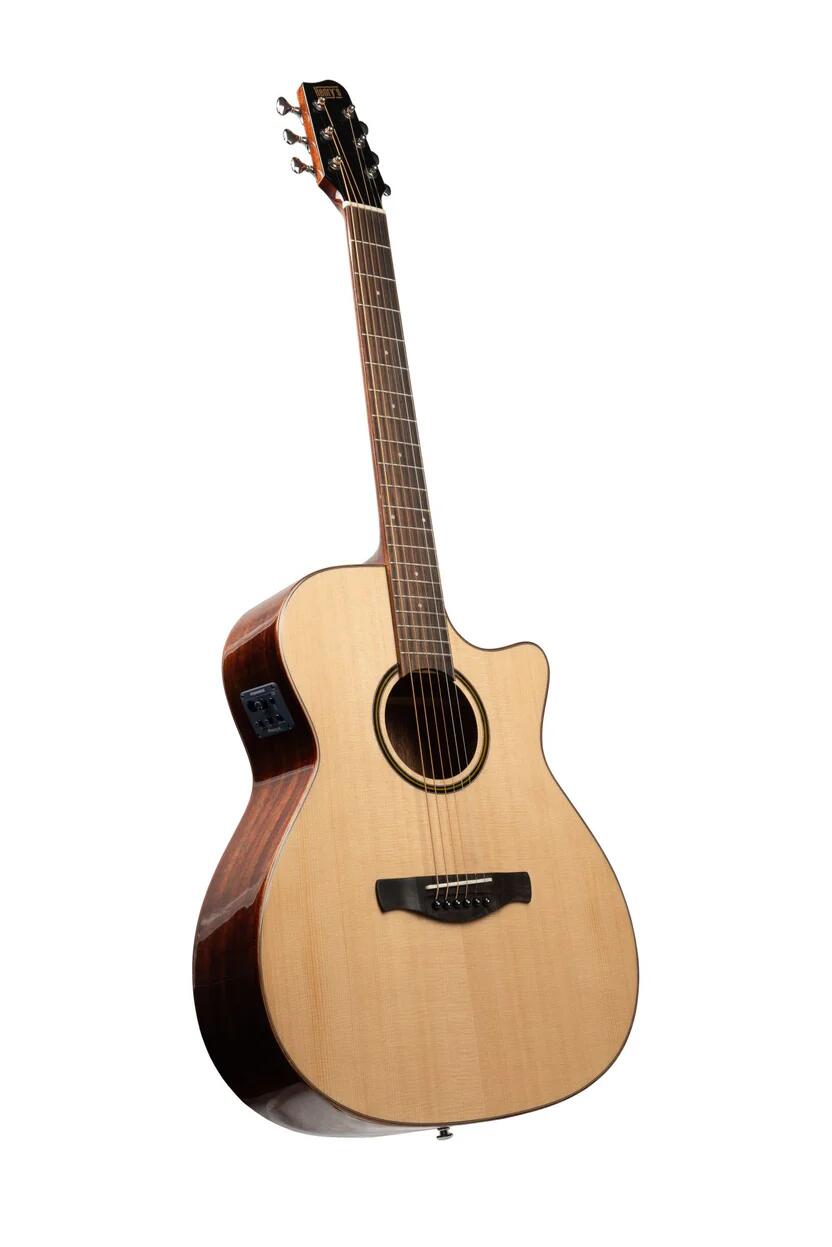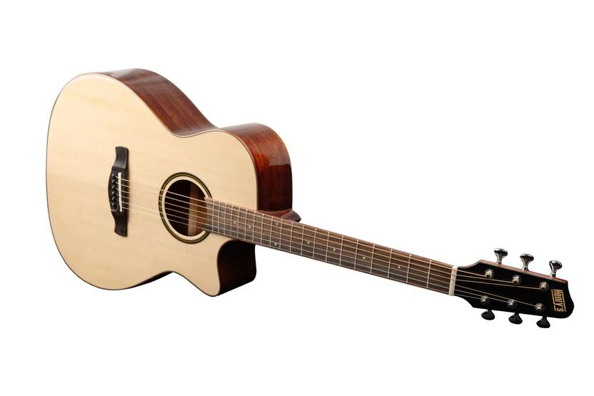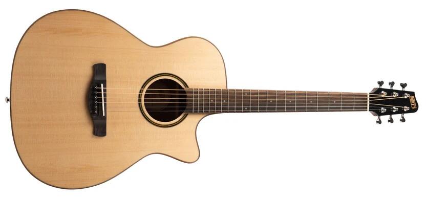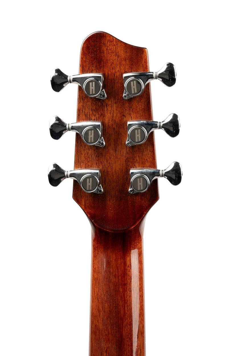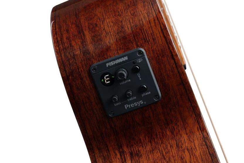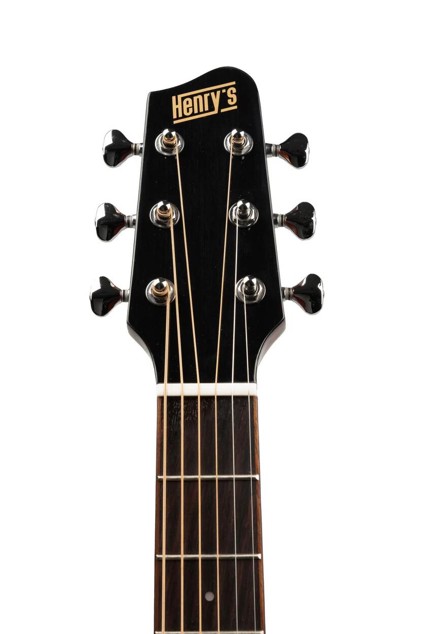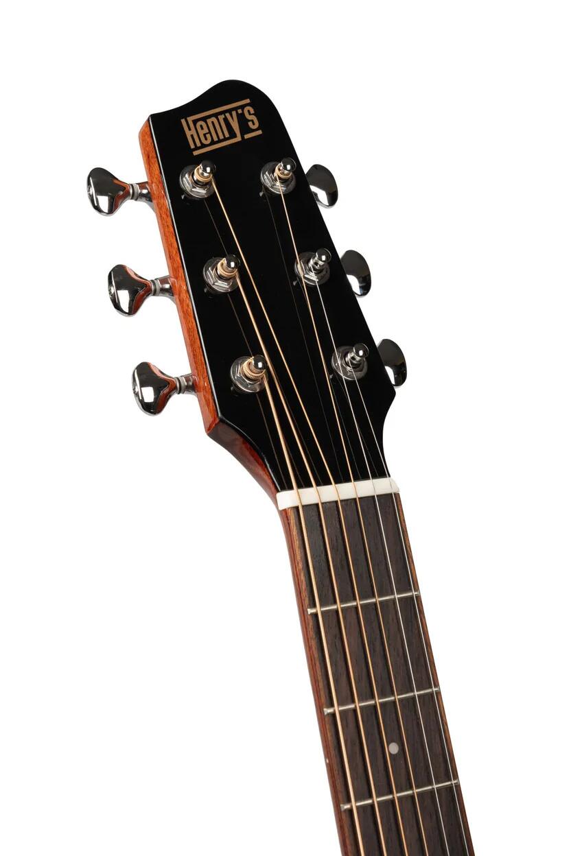 Chitarra elettroacustica Henry’s con forma Grand Auditorium (GA), dotata di top in abete massello, fondo e fasce in mogano, manico in mogano e tastiera in laurel. Il sistema di amplificazione Fishman Presys II include accordatore integrato, controllo del volume ed equalizzazione per bassi, medi e altre regolazioni. La chitarra presenta anche cutaway, larghezza del capotasto di 45 mm, ponte in laurel e due bottoni per la tracolla. Inclusi battipenna adesivo e chiave per la regolazione del truss rod.